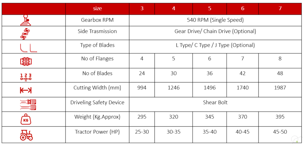 3. Helical arrangement of the blades puts less load on the tractor making it more economical to use.