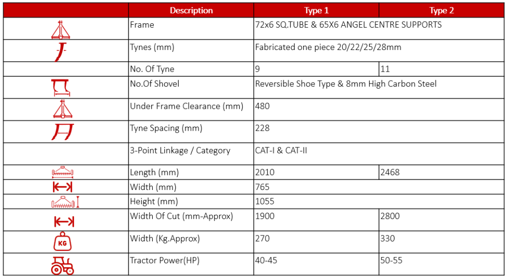 1. LIGHT Duty Rigid cultivator have a sturdy construction design and are capable of withstanding tough working conditions of medium to hard soils.