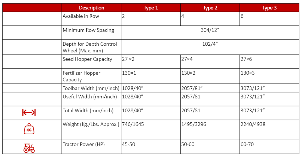 - Appropriate and uniform spacing between Seed and Fertilizer for the good growth of plant & for high yield
