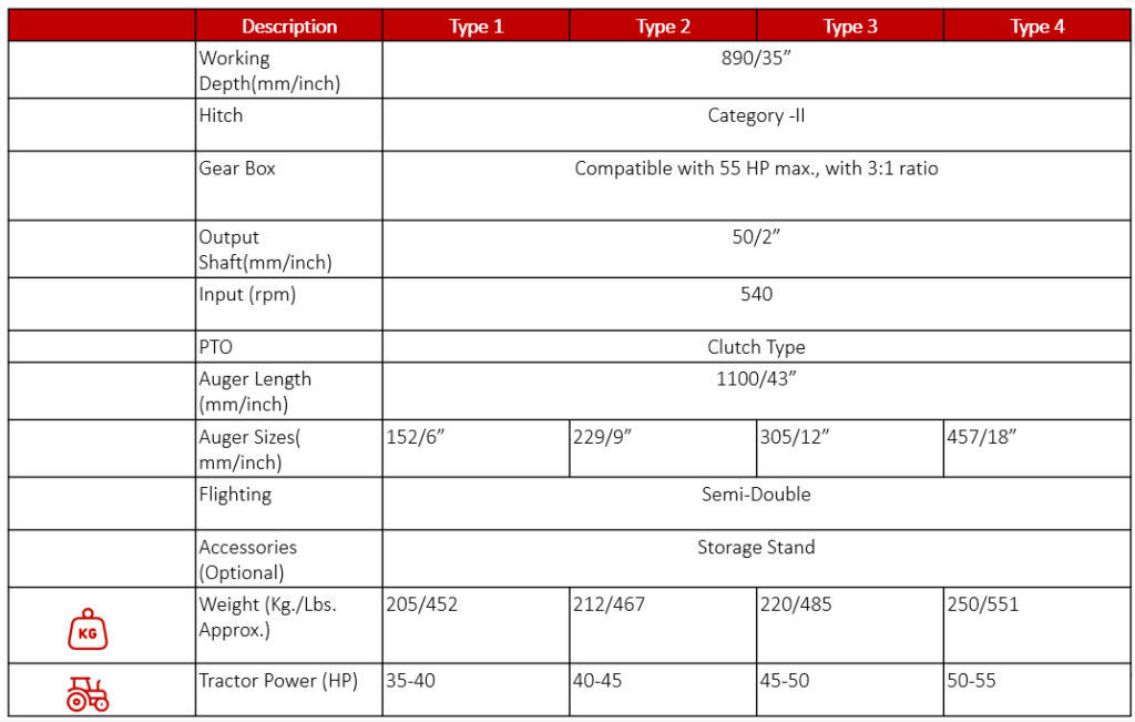 - As it is a PTO driven Implement, it is fastest method to dig holes in farm land.