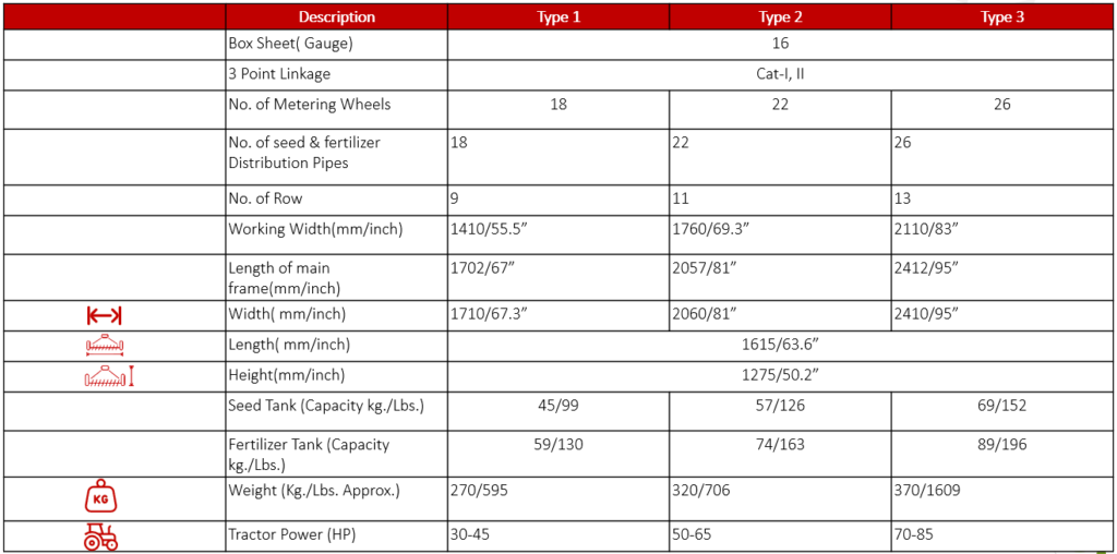 1. The zero till consists of a seed box, fertilizer box, seed and fertilizer metering mechanisms, seed tubes, furrow openers, seed and fertilizer rate adjusting lever and transport cum power transmitting wheels.